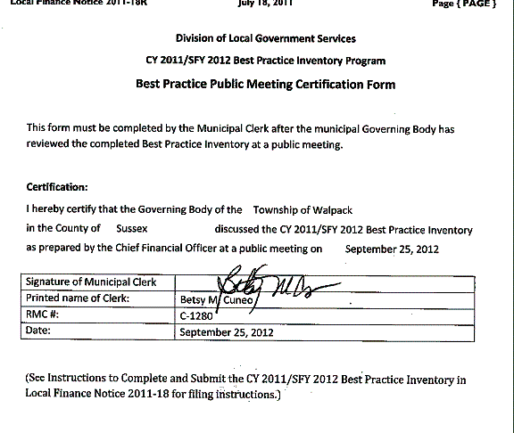 Michelle LaStarza presented the Best Practices paperwork. The committee reviewed the paperwork. Mayor Maglio made a motion to approve the Best Practices seconded by Committeeman Pagano and unanimously carried.